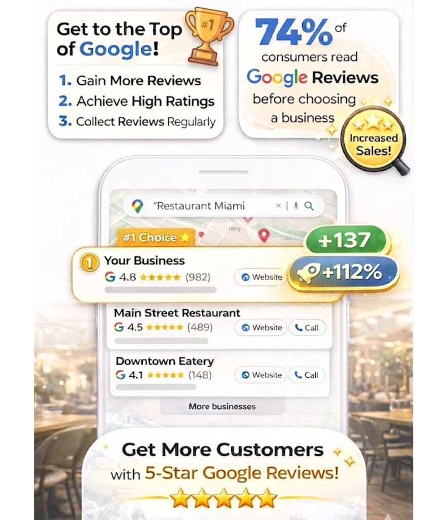 Restaurants, salons, shops, trades — same pattern: more reviews, more foot traffic, more revenue.